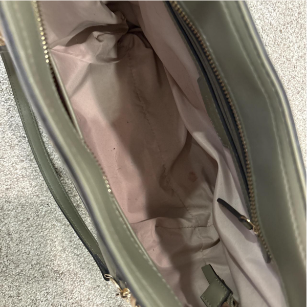 Make this tote yours today! Beautiful, beige and olive green with gold accent, by Nine West! Like new; excellent condition!